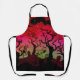 Spuk Halloween-Schürze auf dem Friedhof in Schwarz und Rot. Diese Schürze zeigt einen Spuk Friedhof in Schwarz, Rot und Olivgrün mit Grabsteinen, Spottenbäumen, Hexe, Eule und Fledermäusen.
