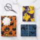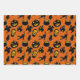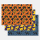 Drei verschiedene Halloween Patterns Orange & Black mit Spuk House Ghost, beängstigender Jack o' Laterne, schwarze Katze, Caldron Frankenstein Monster Lila und Orange beängstigende Geister Black Cat, Bats und Skelette