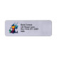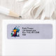 Adressetiketten mit einer coolen Zwischendarstellung. Set auf grauem Lavendelboden. Eine große Kürbisschreie mit einem Kürbiskopf und einem Hexenhut. Er hat ein bedrohliches Grinsen mit zertäterten Roben und ist in einem Friedhof stehend, wo eine Krähe auf seinem Arm schreit. In der Ferne fliegen Fledermäuse ab, ein Vollmond im Hintergrund und eine einsame Eule mit leuchtenden Augen sitzen auf einem Grabstein.