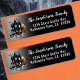 Begrüßen Sie Ihr alljährliches Halloween-Party, die Halloween-Babydusche oder eine lustige Feier mit diesem unterhaltsamen und schlichten Retourenschild mit dunklem, launenhaftem Hintergrund und weißen Schriftart. Das Design umfasst ein Spuk, schwarzes Haus mit orangefarbenen Pop aus Kürbissen und Jack-o'-Laternen, sowie verspielte kleine Gespenster und Fledermäuse, um das festliche Halloween-Ambiente zu vervollständigen. Spooky Schwarz und Orange Spuk Haus Halloween Rücksendeadresse Label mit Fledermäusen, Geistern und einem Moody Vintag Look.