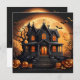 Spuk Haus mit halloween Kürbis und Fledermäusen unter Vollmond, Happy Halloween