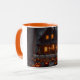Treten Sie ein in ein Reich unheimlicher Bezauberung mit dieser eindringlichen Darstellung eines geheimnisvollen Spuk Hauses, umgeben von glühenden Kürbissen. Ideal für diejenigen, die im Wirbelsäulengeist von Halloween feiern.