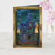 Gespenstische Spuk Hausporträtszene mit den Monstern, die durch das Haus, gespenstische Augen in den Bäumen auf einer Halloween-Nacht kriechen. Eine Spuk Eule wird auf dem toten Baum gehockt, der das Nähern des elektrischen Sturms übersieht! Gemalt mit Blauem, ist grüne und rote Töne, diese illustrierte Cartoonhaus-Porträtszene Set in einem Vintagen Goldrahmen.