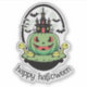 Das ist ein niedliches Aufkleber-Design aus einer grünen Jack-oder-Laterne Figur, einem Spuk Herrenhaus, spukhaften Monstern und Fledermäusen. Sie können den Standard-Text "Happy Hhalloween" anpassen.