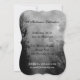 Eine individuelle Einladungsvorlage mit schwarz grungelösten Schriftzeichen und Vintager Blakkletter auf einem unheimlichen Halloween-Himmel mit scheußlichen Bäumen entlang einer Spuk, dunklen Straße, gotischen Raben und einem bewölkten Vollmond in Schwarz, Weiß und Grau. Klicken Sie auf Anpassen, um Ihre Schriftart, Größen und mehr zu ändern, sogar Ihr Design für später retten.