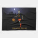 Nicht in Trick oder Behandlung zu Halloween? Wie wär's mit einem kleinen Lieferwagen-Spiel? Ein Skelett, das einen Jack O'Lantern im Basketball treibt. Das Skelett trägt einen T - Shirt mit der Nummer "7" und dem Teamnamen "GHOULS". In der Ferne schwebt der Mond über eine dunkle City-Skyline. Der Text mit "Spuk Hoops" erscheint ebenfalls in orange.