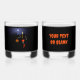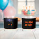 Nicht in Trick oder Behandlung zu Halloween? Wie wär's mit einem kleinen Lieferwagen-Spiel? Ein Skelett, das einen Jack O'Lantern im Basketball treibt. Das Skelett trägt einen T - Shirt mit der Nummer "7" und dem Teamnamen "GHOULS". In der Ferne schwebt der Mond über eine dunkle City-Skyline. Passen Sie Ihren eigenen zusätzlichen Text auf der Rückseite an.
