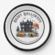 Mit diesen lustigen und festlichen Tellern, die für ein alljährliches Halloween-Party oder eine lustige Feier geeignet sind, servieren Sie Ihre Halloween-Leckereien stilvoll. Diese Teller sind in einem schlichten Schwarz-Weiß-Design gehalten und zeigen ein Spuk Haus mit orangefarbenen Akzenten aus einem gruseligen Baum, Kürbissen und Jack-o-Laternen. Adorable Geister- und Fledermausakzente vervollständigen das Aussehen, zusammen mit einer Mischung aus einfacher Schrift und Schrift-Typografie. Diese Teller sind eine lustige und sprichwörtliche Ergänzung zu Ihrem Party Dekor. Niedliche Spooky Spuk House Halloween-Party Papier Teller Elegante Vintag Ghosts Fledermäuse Pumpkins