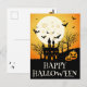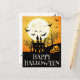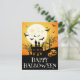Das Spuk House Happy Halloween-Design besticht durch ein gespenstisches Spuk Haus mit Silhouetten, Vollmond, Fledermäusen und Kürbissen. Personalisieren Sie Ihren eigenen Text. Einzigartiges und originelles Design von Golden Bloom Zuhause.