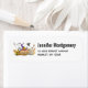 Adressetiketten mit einem niedlichen Bild eines Spuk Kürbishauses mit einer großen Hexe oben und Geistern und Fledermäusen, die herumfliegen.