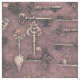 Das Design der spurlosen und skurrilen Stoffe mit verschiedenen Schlüsseln und Schlössern auf dunklem lila Hintergrund. Die Schlüssel und Schlösser haben verschiedene Formen und Größen, einige mit komplizierten Details und andere mit einfachen Formularen. Das Design ist perfekt für Halloween-Projekte, wie Kostüme, Steppdecken, Kissen, Vorhänge und vieles mehr.