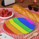 Spunky-Regenbogenstreifen in Primärfarben Pappteller