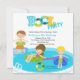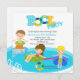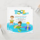 Beginnen Sie Ihre Feier mit dieser bezaubernden Einladung. Ideal für das Party des Geburtstagsjunges. Es hat einen weißen Hintergrund. Ein großer Swimmingpool mit einem hübschen, niedlichen Jungen, der in einer Wasserpfeife stehend ist. Er hat braunes Haar und einen orangefarbenen Anzug. Es gibt eine grüne Tube um seine Taille. Im Schwimmbecken schwimmt ein niedlicher blonder Haarkind in einem Floß. Neben ihm ist ein zauberhaftes braunes Haar Mädchen, das auf einem grünen Floß herumschwebt. Auf der anderen Seite der Einladung ist das Wort Pool Party. Die zwei O's im Pool sind farbenfrohe Schläuche. Karo die vielen anderen Produkte und Designs in diesem Pool Party Linie. ©JW Illustrationen