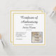 Dies ist eine anpassbare, goldene Grenz-Echtheitskarte mit Platz für ein Foto im quadratischen Format. Ersetzen Sie einfach das Foto durch ein 1:1-Quotient-Bild Ihres Kunstwerks und den Text durch Ihren Namen und Ihre Kunstwerkdetails.