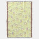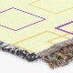 Dieses Muster besteht aus überlappenden Quadraten in zwei verschiedenen Farbtönen - goldgelb und lila - auf hellgelbem Hintergrund angeordnet. Die Quadrate variieren in ihrer Größe, wobei einige als eigenständige Elemente erscheinen, während andere miteinander verwoben sind, was ein Gefühl von Tiefe und Bewegung schafft. Zusätzlich sind kleine rechteckige und lineare Akzente verstreut, was den abstrakten und dynamischen Charakter des Designs noch verstärkt.
