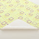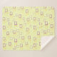 Dieses Muster besteht aus überlappenden Quadraten in zwei verschiedenen Farbtönen - goldgelb und lila - auf hellgelbem Hintergrund angeordnet. Die Quadrate variieren in ihrer Größe, wobei einige als eigenständige Elemente erscheinen, während andere miteinander verwoben sind, was ein Gefühl von Tiefe und Bewegung schafft. Zusätzlich sind kleine rechteckige und lineare Akzente verstreut, was den abstrakten und dynamischen Charakter des Designs noch verstärkt.