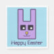 Ein lila Osterhase auf himmelblauem Hintergrund.