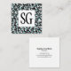 Eine quadratische Visitenkartenvorlage mit Initialen in einem quadratischen Panel. Diese Version hat auch ein Hintergrundbild. Die Initialen befinden sich im fett formatierten Schriftart "Integrity". Name und Beruf/Berufsbezeichnung sowie Telefon-, E-Mail- und Website-Adresse in schwarz auf der Rückseite auf weißem Hintergrund unter Verwendung von Variationen des Matt Antique Schriftartes. Diese Vorlage ist auch ein guter Ausgangspunkt für weitere Anpassungen.