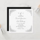 Rounded Black Vintage Floral and Black Text black and white background wedding invitation. Wedding website on the back. Black and white wedding.