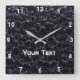 Eine quadratische Wanduhr mit einem schönen schwarzen Muster.