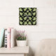 Square Wall Clock: Lilies of the Valley on Black Quadratische Wanduhr