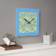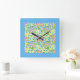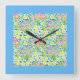 Square Wall Clock, Spring Primroses, Sky Blue Quadratische Wanduhr
