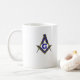 ein blaues Freimaurerquadrat und Kompassse auf einem weißen Hintergrund