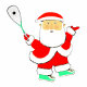 Funny squash player holiday gift, Christmas stocking stuffer and party favors featuring Santa squash player.