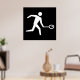 Ein Squash-Player-Symbol in Weiß auf einem schwarzen Hintergrund. Dieses Design sieht wirklich effektiv aus auf diesem Poster