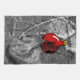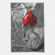Pen and ink drawing of a squirrel climbing in a Christmas tree. The squirrel is surprised by seeing its own reflection in an ornament. The shiny red ball stands out against the black and white drawing, emphasising how strange it must be to the squirrel to see itself.