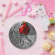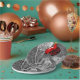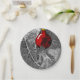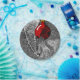 Pen and ink drawing of a squirrel climbing in a Christmas tree. The squirrel is surprised by seeing its own reflection in an ornament. The shiny red ball stands out against the black and white drawing, emphasising how strange it must be to the squirrel to see itself.
