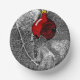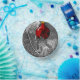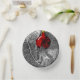Pen and ink drawing of a squirrel climbing in a Christmas tree. The squirrel is surprised by seeing its own reflection in an ornament. The shiny red ball stands out against the black and white drawing, emphasising how strange it must be to the squirrel to see itself.