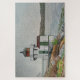 Der Leuchtturm Squirrel Point steht an einem dunklen, nebligen Tag an den Ufern des Kennebec River in Maine. Das gegenüberliegende Ufer nahe Phippsburg ist in Nebel gehüllt. Flechten wachsen auf dem Dach des Glockenhäuses und den Felsen im Vordergrund. Frisches Frühlingsgras sprießt um das noch vom langen Winter kahlen Gestrüpp. Seetang schwappt gegen die felsige Küste und zeigt, wie nah der Leuchtturm am Wasser steht.