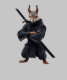 Slim Eichhörnchen Samurai in einem schwarzen Kimono, Arme gefaltet, Katana auf seinem Rücken. Eine leise Warnung in seiner Haltung: "Komm nicht näher. Provokieren Sie nicht. Solch ein wütender Hüter deines Friedens.