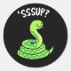 Sssup Funny Hissing Snake Pun Dark BG Runder Aufkleber