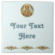 Die Chromolithographie, bei der Kalksteinplatten im Druckprozess eingesetzt wurden, zeichnet sich durch unregelmäßige "Farbpunkte" aus, die in ihrer Ausgabe sichtbar sind. Dieser Stileffekt inspirierte den Hintergrund dieser Kachel. Gefällt es nicht, dass der Hintergrund geklatscht ist? Einfach das Anpassungsmenü benutzen, um das Bild zu löschen, um einen schlichten, pastellgelben Hintergrund zu zeigen. Der gelbe Hex-Code ist #EFE3AD und unterliegt natürlich Änderungen. + Image Credit (BK 001): Antiquitätenbild von St. Barbara von Nicomedia aus einem chromolithographischen Dekodruck des späten 19. und frühen 20. Jahrhunderts, ursprünglich von B. Kühlen, Mönchengladbach, Deutschland, aus der privaten Sammlung religiöser Ephemerien des Designers herausgegeben. + Fest: 4. Dezember + Diese Roundel St. Barbara hat eine reiche Farbpalette. Empfohlene Farben (mit ihren Hex-Codes) für optionale Elemente: Gold (#8C762F), helles Aqua (#C3D9C6), mittleres Aqua (#7A988E), dunkles Aqua (#537781), hellgelbe Orange (#DDA943), matorange (#5) D57F11), grünen Chartreuse (#B5A72D), dunkelblau grau (#7F9189), Rostrot (#B32A02) und gelblich beige von weiß (#DCD3OM). + Alle Texte hier sind in dunklem Aqua (#5377 781).
