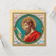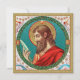 Diese Runde beherbergt einen pensiven St. Bartholomäus (auch bekannt als Nathaniel; 1. Jahrhundert), der die Schärfe eines Messers in Betracht zieht. Der Heilige Bartholomäus, der von dem Apostel, mit dem er am häufigsten verbunden ist, nach Christus Aufszension in Kleinasien, Äthiopien, Indien und Armenien zu Jesus gebracht wurde, predigte das Evangelium. Traditionell traf er ein grauenhaftes Märtyrertod, das lebendig geschlachtet oder gehäutet wurde. Aus diesem Grund sind seine wichtigsten Eigenschaften ein Tanner- oder Schleudermesser ... und (hier nicht gezeigt) eine menschliche Haut! Passenderweise ist er Schutzpatron von Metzgern und Lederarbeitern - nämlich Tannern, Buchbindern und Schuhmachern. + Fest: August 24 + Image Credit (JMAS 03): Antiquitätenbild von St. Bartholomäw dem Apostel aus einem verstorbenen 19. Jahrhundert in Chromolithographie mit vergoldeten Akzenten, die ursprünglich von Josef Müller, Kunstverlag, München, aus der privaten Sammlung religiöser Ephemerien des Designers veröffentlicht wurden. Das Bild ist eines von zwölf in der Apostelserie des Herausgebers (Nr. 12155).