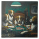 Dieses Design zeigt ein Gemälde des amerikanischen Künstlers Cassius Marcellus Coolidge (1844-1934), liebevoll als Cash oder Kash bekannt. Es zeigt eine Gruppe von St. Bernard Hunden Schauspiel wie Menschen, während sie das Kartenspiel Poker. Vier Hunde sitzen um einen runden Tisch, der mit einem grünen Poker bedeckt ist. Sie haben anthopomorphische Haltungen und Gesichtsausdrücke adoptiert. Die Hunde werden mit menschgemachten Kleidung und Accessoires wie Brillen dargestellt, und sie lehnen sich beim Kartenspiel über den Tisch. Die Hunde sitzen in sehr großen und opulenten Stühlen. Einige der Hunde rauchen Zigarren, und neben dem Tisch ist eine Flasche Whisky, was darauf hindeutet, dass sie sich traditionell menschlichen Lastern widmen. Die Hunde schauen sich spielerisch und vorsichtig an, während sie um den Sieg beim Poker kämpfen. Es gibt Chips im Casino-Stil verteilt in Haufen auf dem Tisch. Die ursprüngliche Kunst wurde 1894 gemalt. Es ist zu einem sehr beliebten Gemälde geworden, weil es sich um eine relativ humorvolle Darstellung von Tieren handelt, die eine typische menschliche Tätigkeit ausüben.