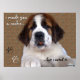 Foto eines Heiligen Bernard Welpen mit einem Keks im Mund mit einem lustigen Sprichwort: Ich habe dir einen Keks gemacht, aber ich habe ihn gegessen. Das Vokabular der Welpen ist noch nicht vollständig entwickelt. Er hat gut gemein.