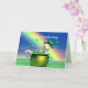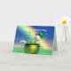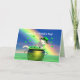 Karte mit meinem 3D-Kunstwerk einer winzigen weißen Katze in einem Topf aus Gold mit umherfliegenden Kleeblättern und einem hellen Regenbogen. Im Text steht: "Happy St. CATrick's Day!"