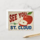Eine bezaubernde St. Cloud Minnesota Vintage Reise Postkarte mit einem schönen roten Apfel, zusammen mit lustigen Retro-Stil Text, der sagt: "See you in St. Cloud"
