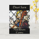Begrüßen Sie Ihre walisisch sprechenden Freunde mit dieser eleganten St. David's Day-Karte mit einem sehr alten Buntglasbild von St. David (Dewi Sant), dem Schutzheiligen von Wales (Nawddsant Cymru). Inside-verlassen ist die mitreißende walisische Nationalhymne, innen-rechts ist ein zweisprachiger St. David's Day Gruß.