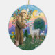 Der Heilige Franziskus, der Schutzheilige der Tiere und der Umwelt, wird hier mit einem süßen Baby Lama gezeigt. Ein Kaninchen, Lamm und eine Taube des Friedens tragen ebenfalls zu dieser zauberhaften Szene bei.