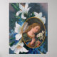 St. Gabriel ("Gottes Stärke") ist der bekannteste Erzengel der Annunziation, der die gute Nachricht an die Jungfrau Maria bringt, dass Gott sie zur Mutter Seines Sohnes Jesus (Luke 1:26-45) gewählt hat. + Hier ist St. Gabriel prächtig in rot, blau und grün gekleidet mit rötlichen Goldstrimmen. Kopf verbeugt, Augen nach unten gegossen - in seiner links Hand hält er ein Lilienspray, das Marias Reinheit symbolisiert; und mit seiner rechten Hand macht er eine Sprechstunde. + St. Gabriel ist die Schutzpatronin von Boten, Postangestellten, Briefmarke- und Telekommunikationsmitarbeitern. + Fest (in Verbindung mit SS. Michael and Raphael the Archangels): 29. September + Image Credit (M 035): Antikes Bild von St. Gabriel mit Lilies mit dem Titel The Angel of the Annunciation by the Italian Baroque Maler Carlo Dolci (1616-1686), Galleria Palatina, Palazzo Pitti, Florenz, 1650, aus einer Postkarte, die ursprünglich in Chromolithographie von Stengel, Dresden, Deutschland, Nr. 2933, c. 1900 aus der privaten Sammlung religiöser Ephemeriden des Designers. + Image Credit (Hintergrund): Weiße Osterlilien mit Blauen Blumen, aus einer antiken Postkarte, die ursprünglich von Visto Rev., Mailand, Italien, Anfang des 20. Jahrhunderts, aus der privaten Sammlung der Ephemerien des Designers herausgegeben wurde.