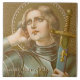 Der heilige Joan von Arc, die "Maid von Orleans", ist die Schutzheilige von Frauen, die im Militär dienen. In dieser Darstellung wird ihre militärische Karriere betont. St. Joan ist in einer modernen Plattenrüstung aus dem 15. Jahrhundert verkleidet und trägt ein Schwert in einem mit Fleur di lis verzierten Schwert. Der Fleur di lis, eine stilisierte Lilie, ist ein Motiv mit heraldischer, politischer und religiöser Bedeutung. + Fest: 30. Mai + Image Credit (JM 28): Detail eines antiken Bildes von St. Joan of Arc, ursprünglich in Chromolithographie von Josef Müller Art Publisher, München und New York, im ersten Quartal des 20. Jahrhunderts, aus der privaten Sammlung religiöser Ephemerien des Designers veröffentlicht. Dies ist nur eines von über sechzig Bildern in einem sehr beliebten Stil von devotionalen Drucke in verschiedenen Größen und Formaten von Müller zur Jahrhundertwende herausgegeben.