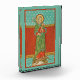 Hier steht ein reifer, grauhaariger St. Joseph auf einem Globus vor einer roten Wand, die mit goldgelben Zierteilen und Stangen hängt. Der Wandteppich ist gemustert mit gleichbewaffneten Kreuzen, die in rotierten Quadraten eingeschlossen sind. Wie es aufgehängt wird, trotzt logischer Erklärung, weil der Hintergrund aus einem unendlich tiefen aqua-blauen Himmel besteht, der von Sternen bedeckt ist. + St. Joseph ist reich in kräftigen Farben vergossen. Sein Gewand ist rot, sein Mantel grün mit einem dunklen Aquafutter und goldgelben Rahmen. Er hält ein Spray aus weißen Lilien, das die Reinheit in der rechten Hand symbolisiert, und eine L-förmige, braune Holzschnitzerei, die auf seinen Beruf in seinen links hinweist. + Unter den Sandalen von St. Joseph sind ein kleiner Drache, eine Krone, eine Schriftrolle und ein Globus mit den Namen der bevölkerten Kontinente - Asien, Australien, (Nord und Süd) Amerika, Afrika und Europa. Der Drache und die Schriftrolle stellen eine Bedrohung für die Kirche dar. Der Drache bezeichnet den Satan; die Schriftrolle, Ketzer, indem sie ein Précis von Papst Pius IX., dem Fehler-Lehrstuhl von 1864, ist, ein Dokument, das philosophische und politische Positionen des 19. Jahrhunderts artikuliert, die dem Katholizismus feindlich gegenüberstehen. Die Schriftrolle lautet: Non serviam ("Ich werde nicht dienen") / Atheismus (Atheismus) / Odium Ecclesiae (Hass der Kirche) ~ S. Pontifice (Der Papst) ~ Episcopi (Bischöfe) ~ Presbyteri (Priester) / Liberalismus. Der Ausdruck "Non-serviam", d.h. "Ich werde nicht dienen", wird dem Satan zugeschrieben, der Gott abgelehnt hat und aus dem Himmel verbannt wurde. Atheismus, Antiklerikalismus und Liberalismus sind selbsterklärend und waren Bewegungen, die Pius IX. Politik geprägt haben, insbesondere was die Vereinigung Italiens und seinen Aufstieg als moderner Nation-Staat angeht. Die mächtige Gestalt des hl. Josef Briefmarke die Ketzerei aus und trampelt den Power des Satans über die Welt, indem sie den Drachen unter seinen Füßen zerquetscht, der die Krone aus dem Drachenkopf stürzt. + Eine viel aufwändigere, fast zeitgenössische Variante wurde als schwarz-weiße Lithographie herausgegeben. (Vergleichen Sie unsere DT 01.) Wie der Schwarz-Weiß-Lithographie wurde auch dieser Chromo- oder Farblithograph veröffentlicht, um Papst Leo XIII. das "Gebet zum Heiligen Joseph" von 1889 zu verkünden. + Hauptfest des hl. Josef: März 19; Feier des hl. Josef des Arbeiters: 1. Mai + Image Credit (VVP 09): Antichchromolithograph von St. Joseph, Sant's. Protector der Kirche, Betet für uns [H. Jozef, Beschermer der H. Kerk, B.V.O.] ursprünglich veröffentlicht von K[arel] v[an] d[er] Vyvere-Petyt, Brügge, Belgien, c. 1890 aus der privaten Sammlung religiöser Ephemeriden des Designers.
