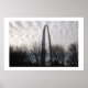 Einzigartige Aussicht auf den Gateway Arch in St. Louis. Die Arche steht als prächtiges Stück gegen die Textur von Wolken am Himmel und über der treeline silouette.
