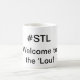 Kaffee-Tasse, die das St.- LouisTwitter hashtag kennzeichnet