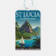 Stunning retro travel poster of St. Lucia featuring the famous Piton mountains rising dramatically from the turquoise Caribbean sea.