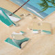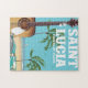 St. Lucia Vintag Holiday Print - Klassisches Urlaubsplakat mit einem Oldtimer und einer akustischen Gitarre am Strand und auf der Insel Saint Lucia. Strandreiseplakat.